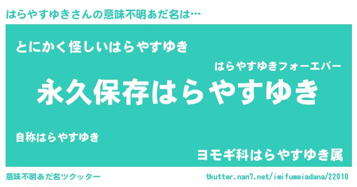 | ヘコむあだ名 | 『はらやすゆき(笑)』『はら太郎』 |