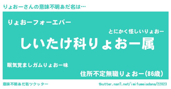 | 男性向けラノベタイトル風あだ名 | 『リョオースレイヤー』 |
