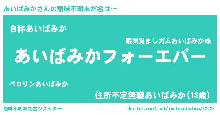| 欧米人風あだ名 | 『あいばみかクリステル』 |