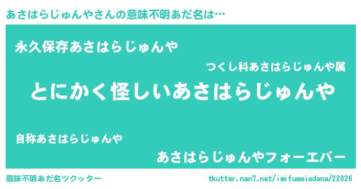 | 女子向けラノベタイトル風あだ名 | 『あさはらじゅんやは平凡を望む』 |