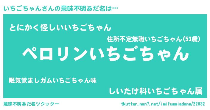 | 男性向けラノベタイトル風あだ名 | 『イチゴチャンアートオンライン』 |