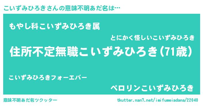 | 男性向けラノベタイトル風あだ名 | 『魔弾の王とこいずみひろき』 |
