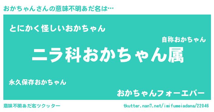 | 女子向けラノベタイトル風あだ名 | 『おかちゃんの玉の輿計画!』 |