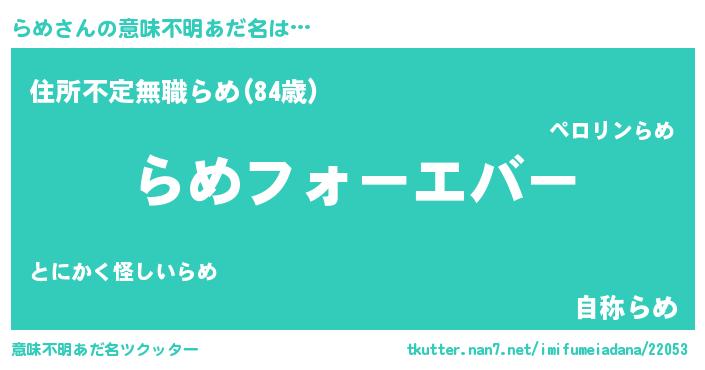 | ファンタジー風あだ名 | 『エターナルラメー』『ヴァルラメーナ』 |