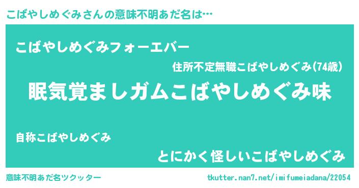 | 男性向けラノベタイトル風あだ名 | 『こばやしめぐみに滅ぼされるだけの簡単なお仕事です』 |