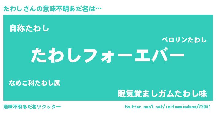 | ファンタジー風あだ名 | 『エターナルタワシー』『ゼタワトゥ』 |