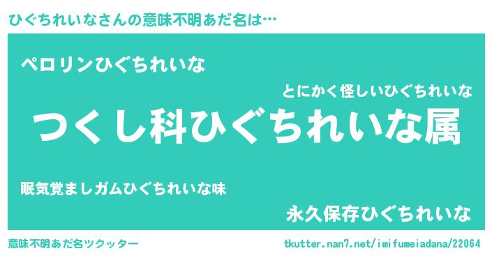 | ヘコむあだ名 | 『ひぐにー』『ひぐちれいな(笑)』 |