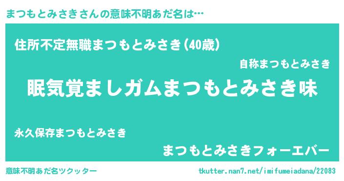 | 男性向けラノベタイトル風あだ名 | 『ノーゲーム・ノーマツモトミサキ』 |