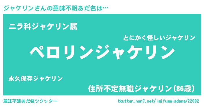 | 胡散臭い通販商品みたいなあだ名 | 『億万長者になれるブレスレット…その名も「ジャケリン」』 |