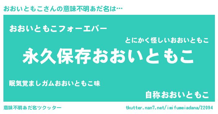 | 胡散臭い通販商品みたいなあだ名 | 『来世でも幸せになれる健康食品…その名も「おおいともこ」』 |