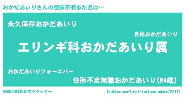 欧米人風あだ名 | 『トリンドルおかだあいり』 |