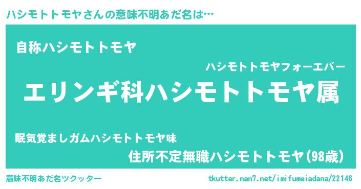 | 肩書あだ名 | 『ハシモトトモヤディレクター』 |