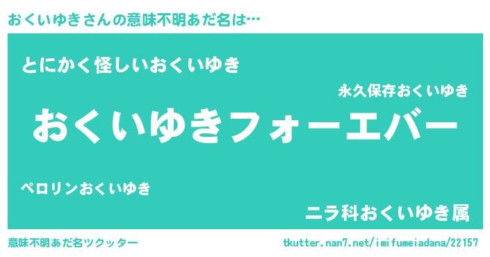 | 欧米人風あだ名 | 『アンジェラ・おくいゆき』 |