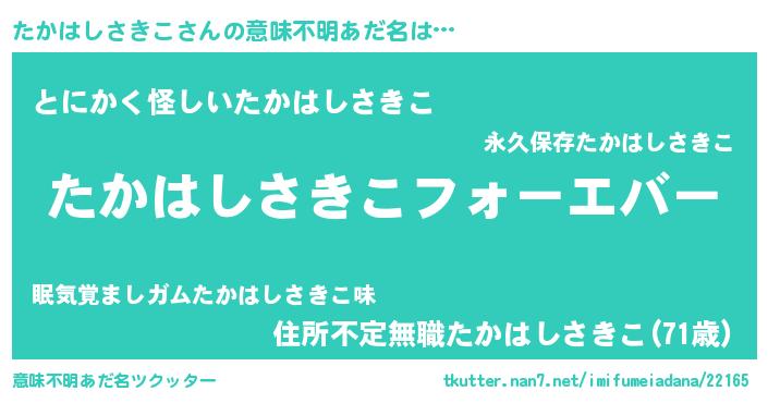 | ファンタジー風あだ名 | 『エターナルタカハシサキコー』 |