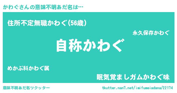 | 欧米人風あだ名 | 『ケンブリッジかわぐ』『ダニエルかわぐ』 |