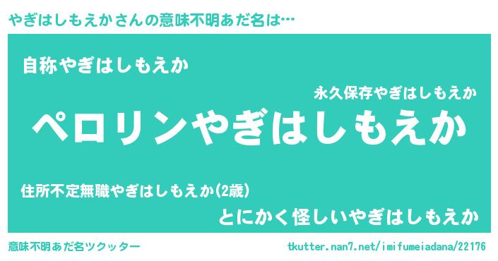 | 欧米人風あだ名 | 『マイケルやぎはしもえか』 |