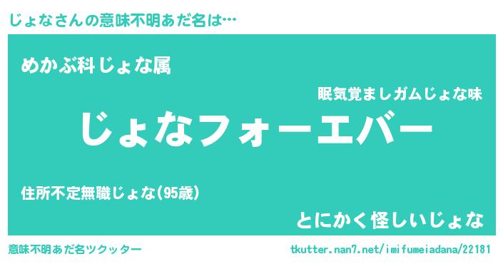 | ヘコむあだ名 | 『酢こんぶ』『じょを』『じょな(爆)』 |