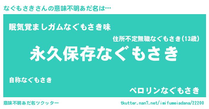 | 伝説のあだ名 | 『古より伝わる吟遊詩人なぐもさき』 |