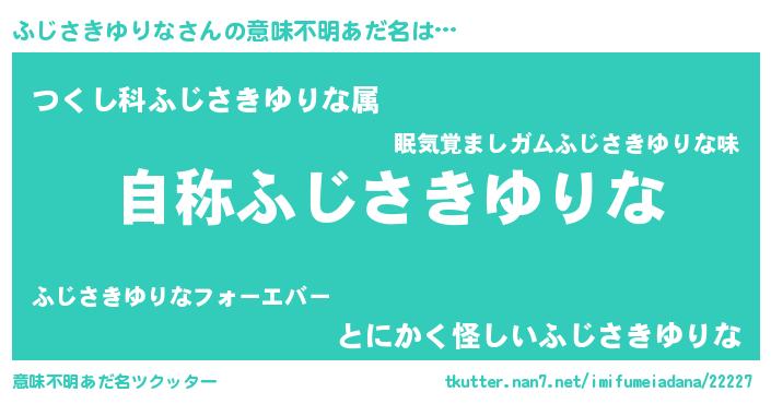 | 欧米人風あだ名 | 『ふじさきゆりな・ステッグマイヤー』 |