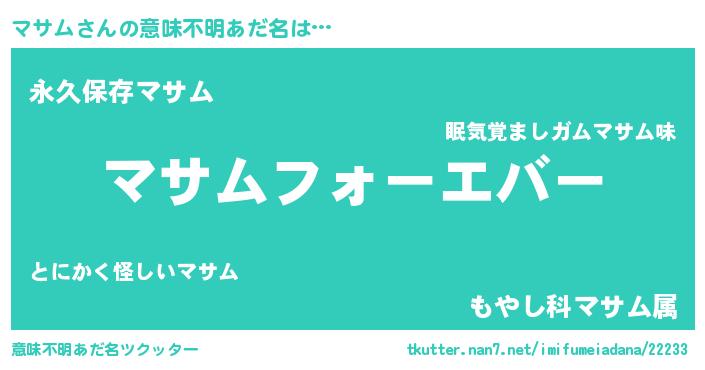 | ファンタジー風あだ名 | 『エターナルマサムー』『マサディッシュ』 |