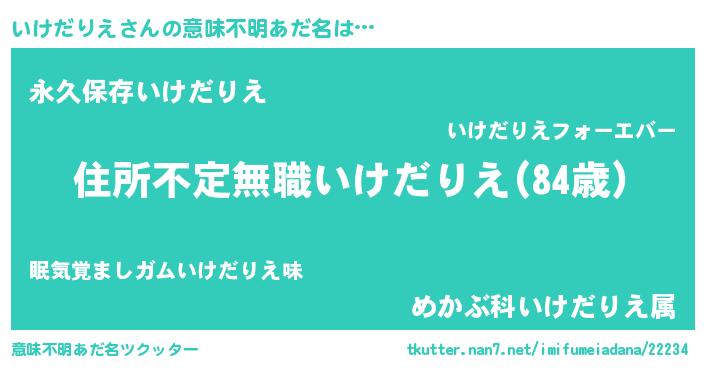 | ヘコむあだ名 | 『いけだりえ(震え声)』『酢こんぶ』 |