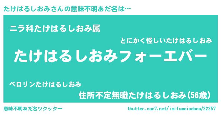 | ファンタジー風あだ名 | 『エターナルタケハルシオミー』 |