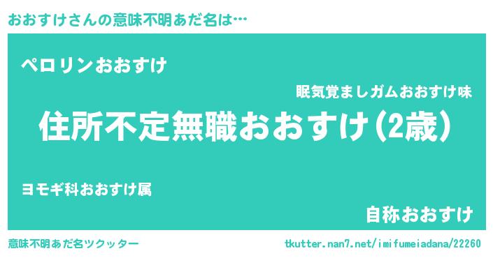| 男性向けラノベタイトル風あだ名 | 『この素晴らしい世界におおすけを!』 |