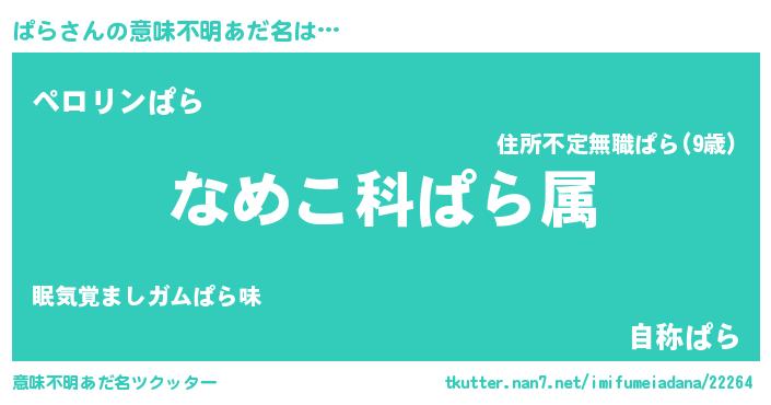 | ヘコむあだ名 | 『ぱらにー』『レバニラ』『ぱらお』 |