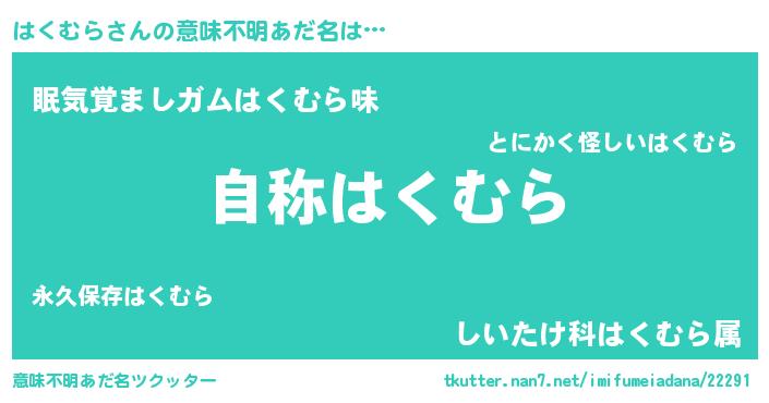 | 女子向けラノベタイトル風あだ名 | 『闇のはくむら』『死神はくむらの再婚』 |