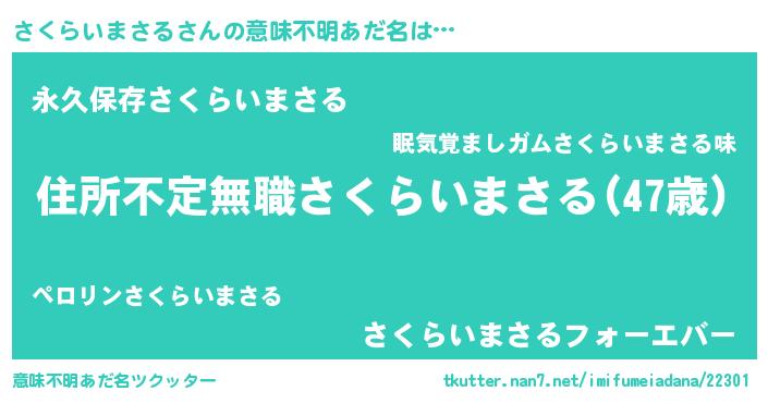 | 女子向けラノベタイトル風あだ名 | 『さくらいまさるが死なない童話 林檎のさくらいまさるの診療簿』 |