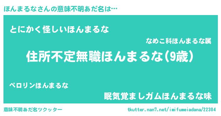 | 男性向けラノベタイトル風あだ名 | 『この素晴らしい世界にほんまるなを!』 |