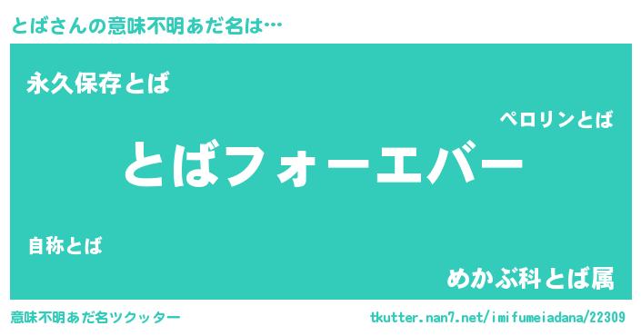 | 男性向けラノベタイトル風あだ名 | 『緋弾のトバ』『トバスレイヤー』 |