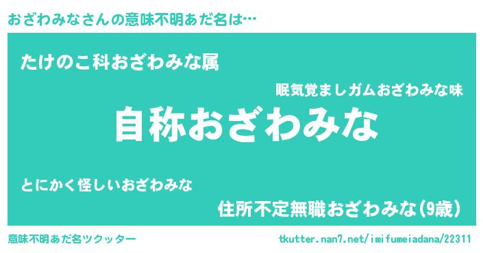 | 男性向けラノベタイトル風あだ名 | 『魔法科高校のおざわみな』 |