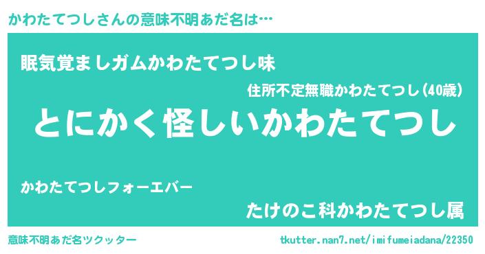 | 女子向けラノベタイトル風あだ名 | 『かわたてつしは平凡を望む』 |