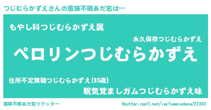 | ヒーロー風カッコイイあだ名 | 『スーパーツジムラカズエ』 |
