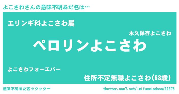 | 欧米人風あだ名 | 『マイケルよこさわ』 |