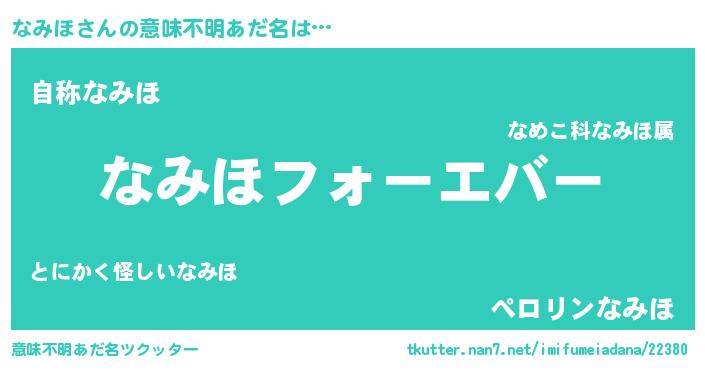 | ファンタジー風あだ名 | 『エターナルナミホー』『ゼナミトゥ』 |