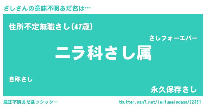 | ヘコむあだ名 | 『さし(爆)』『牛乳』『さしにー』 |
