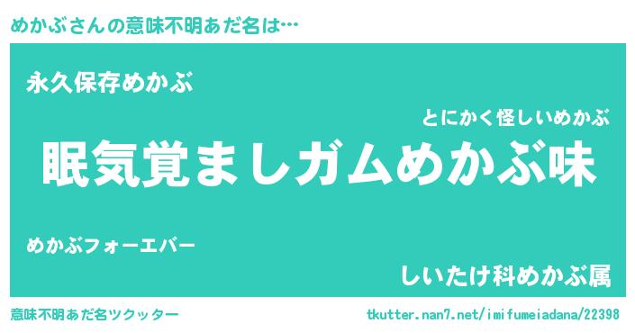 | ヒーロー風カッコイイあだ名 | 『天空の使者めかぶ』『ネオメカブ』 |