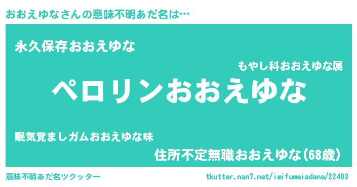 | 胡散臭い通販商品みたいなあだ名 | 『億万長者になれる水晶球…その名も「おおえゆな」』 |