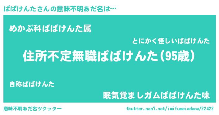 | 料理風あだ名 | 『ばばけんたのカルパッチョ風』 |