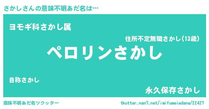 | ヘコむあだ名 | 『さかにー』『さかし(遠い目)』 |