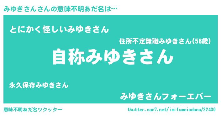 | 男性向けラノベタイトル風あだ名 | 『はたらくみゆきさんさま!』 |