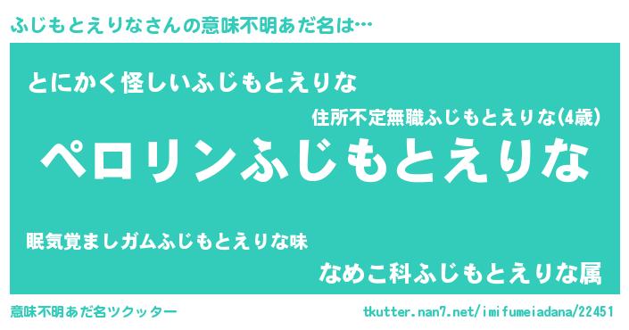 | ポケモン風あだ名 | 『フジチュウ』『ヒフジモトエリナ』 |