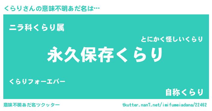 | 男性向けラノベタイトル風あだ名 | 『くらりという概念が存在しない退屈な世界 』 |