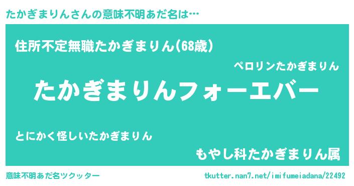 | 肩書あだ名 | 『たかぎまりん国家主席』 |