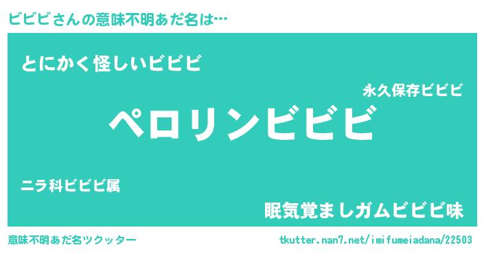 | ヘコむあだ名 | 『ビビにゅー』『ビビぷりん』 |