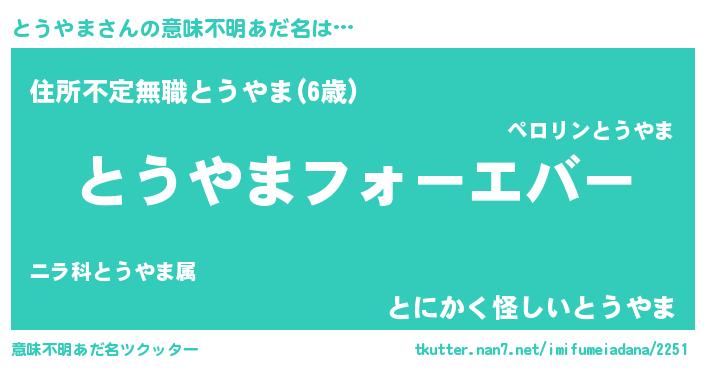 | ポケモン風あだ名 | 『トウヤダネ』『トーウイ』 |