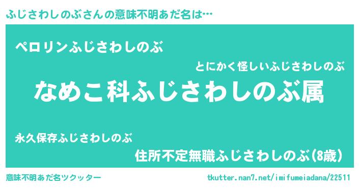 | 男性向けラノベタイトル風あだ名 | 『転生したらふじさわしのぶだった件』 |