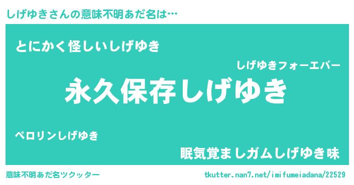 | 男性向けラノベタイトル風あだ名 | 『しげゆきという概念が存在しない退屈な世界 』 |
